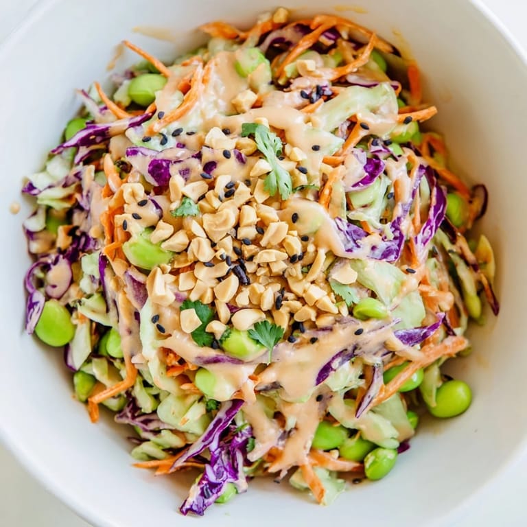 You can swap the edamame for grilled tofu if you want something heartier, or toss in shredded rotisserie chicken if you're not keeping it vegan. I've also added snap peas and cucumber when I had them sitting in the crisper, and they added even more crunch without changing the flavor balance. This salad is forgiving and loves whatever extra vegetables you throw its way.