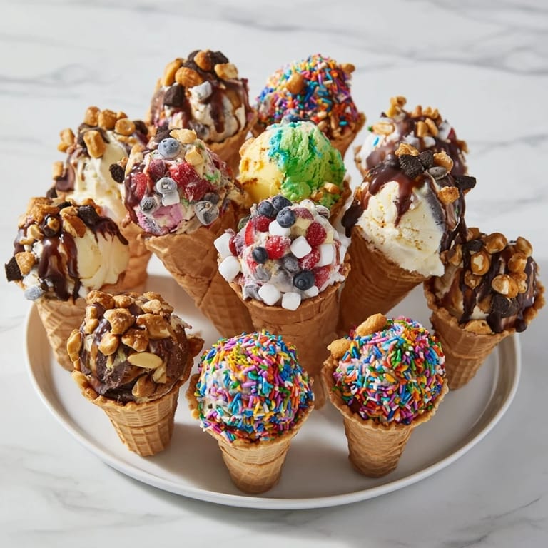 For added flair, consider dipping cones in melted chocolate and sprinkles before filling. Use a freezer-safe tray to keep filled cones firm and ready. Preparing toppings in small bowls or ramekins helps keep the board organized and inviting.