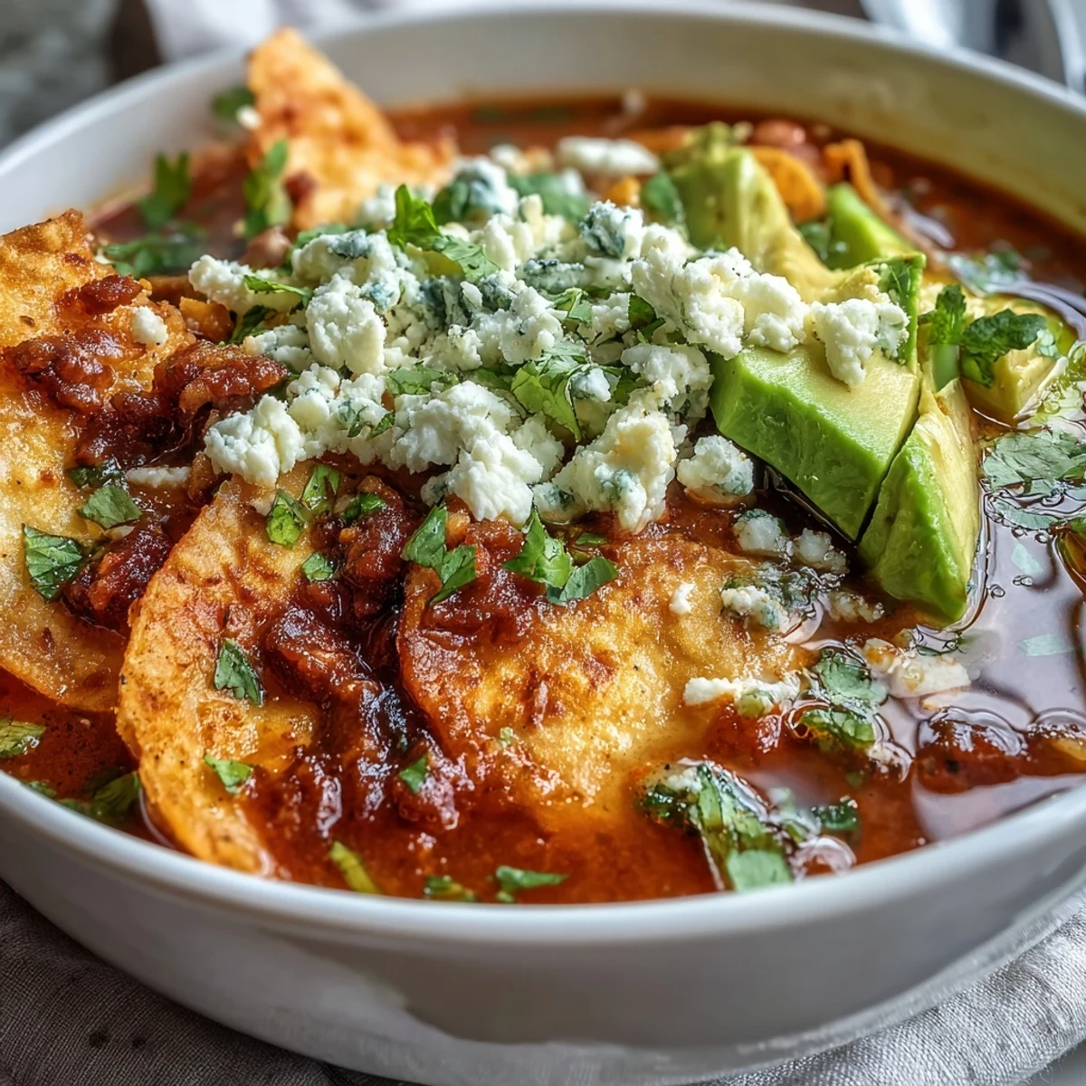 - Layer crispy tortilla strips in each bowl, pour hot broth over them, then scatter on the fresh toppings. The moment between assembly and eating should be as short as possible so the tortillas stay crisp.