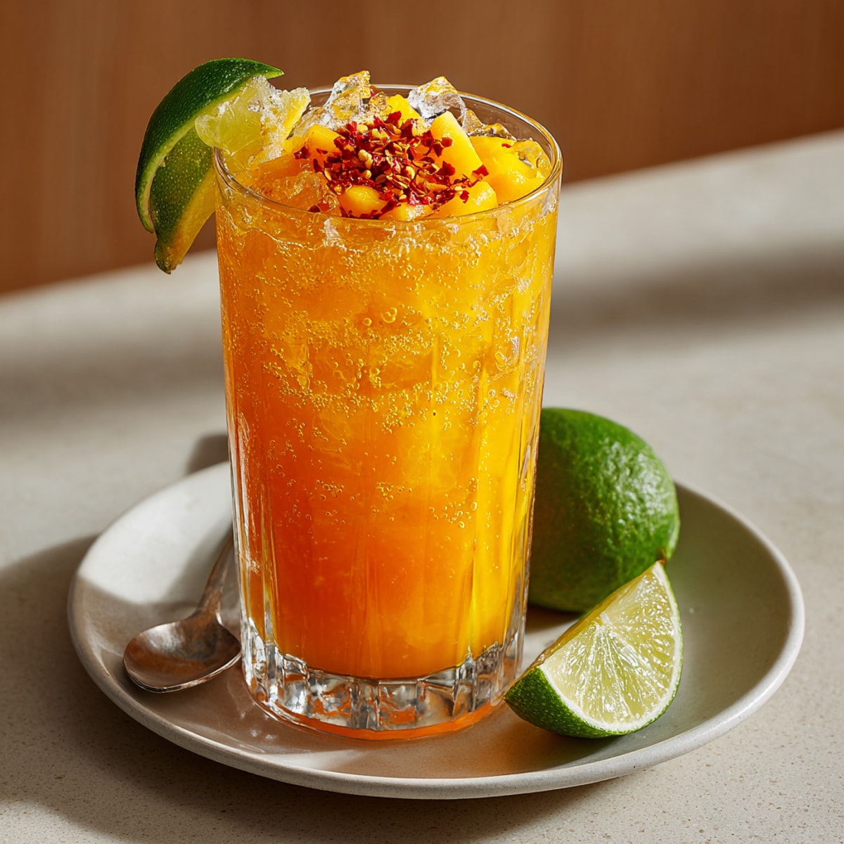 - Sprinkle a small pinch of chili flakes on top of each drink. Add a lime wedge on the rim for a burst of fresh aroma and color. Serve right away while bubbly and cool