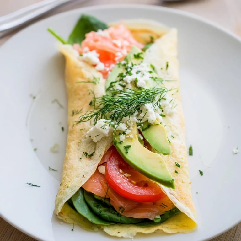 - Fillings (spinach, salmon, avocado, tomato, feta, fresh herbs): Choose based on your mood or what's on hand—the crepe is flexible enough to partner with almost anything you arrange in that center line.