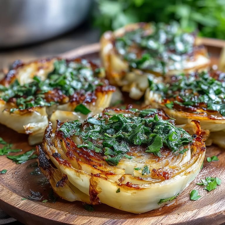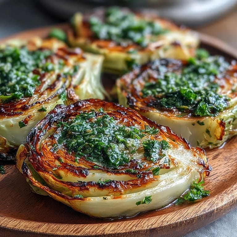Save My friend texted me a photo of charred cabbage wedges at some trendy restaurant, and I thought she'd lost her mind. Then she described the crispy edges, the bright herb sauce, and suddenly I was in my kitchen with a knife and a head of cabbage, determined to figure it out myself. That first attempt was revelatory—what I'd always seen as humble, everyday cabbage transformed into something golden and almost caramelized, nothing like steaming it in a pot. The jalapeño chimichurri came next, born from frustration with wanting heat without heaviness, and that's when everything clicked into place.