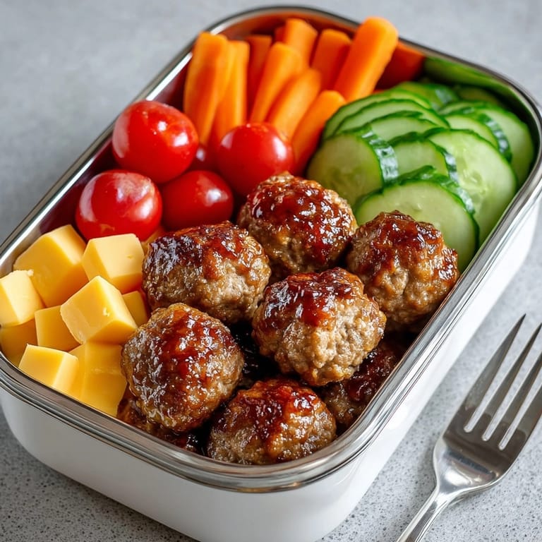 Save This hearty cream soda-glazed meatball snack box has transformed my weekday lunch routine and become a family favorite for picnics and gatherings. The sweet-tangy glaze creates irresistibly juicy meatballs that pair perfectly with fresh vegetables for a complete meal in one convenient package.