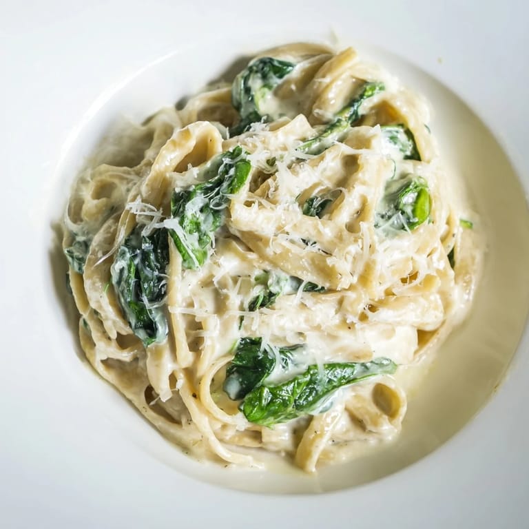 Save The smell of garlic hitting warm butter always drags me straight back to my cramped apartment kitchen, standing over a skillet at nine on a Tuesday night. I was tired, hungry, and staring into a nearly bare fridge when I spotted a bag of wilting spinach and a box of fettuccine. What started as desperation turned into one of those meals you make over and over, the kind that feels like a small victory every time. This creamy garlic spinach pasta has saved more weeknights than I can count, and it never gets old.
