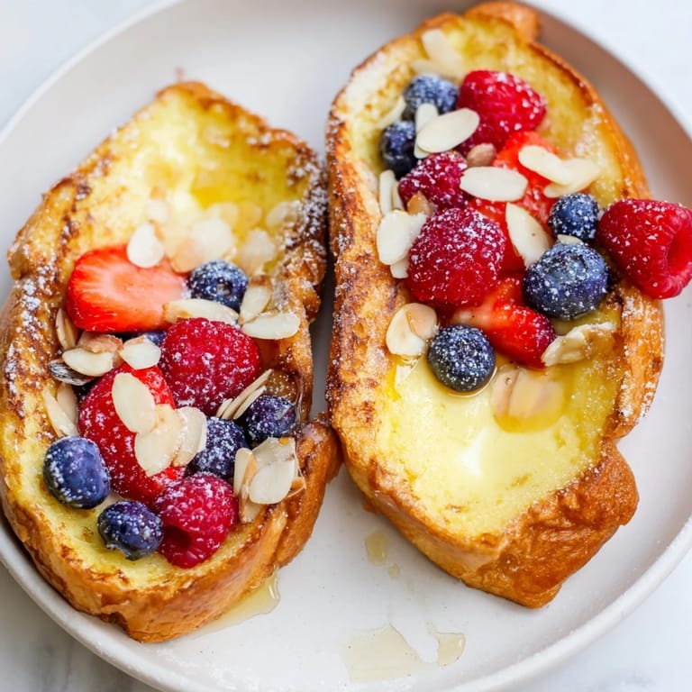 Serve this with a small dollop of Greek yogurt or lightly whipped cream on the side if you want to lean into richness. A cup of good coffee or tea cuts through the sweetness beautifully, and having fresh berries alongside means you can add more if your first bite makes you want it fruitier. For a more indulgent brunch, pair it with a gentle scrambled eggs and a simple green salad dressed in lemon vinaigrette to balance the sweetness of the toast.