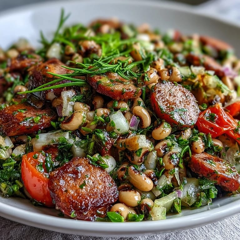 Save My cousin texted me last New Year's Eve asking if I could bring something that felt both traditional and a little unexpected to her dinner party. I'd been playing around with black-eyed peas that week—not the heavy casserole version, but something brighter, more alive. That's when it clicked: what if I treated Hoppin' John like a proper salad, kept the soul of it intact, but let fresh tarragon and a sharp mustard dressing do the talking? The moment I tasted it straight from the bowl, I knew I'd stumbled onto something good.