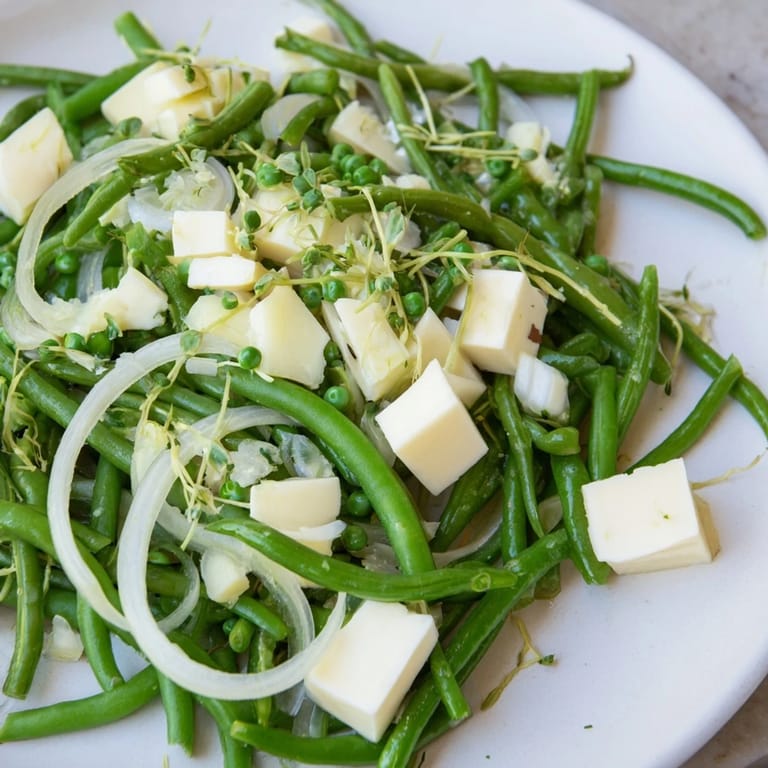 Save The first time I arranged vegetables like vines across a platter, I was trying to impress someone who'd mentioned they loved eating with their eyes first. Snap peas and green beans seemed too simple until I realized their natural curves could actually tell a story on the plate. Then came the sharp white cheddar, catching the light like little jewels threaded through green tendrils. That dish taught me that sometimes the most elegant meals come from listening to what your ingredients want to become.