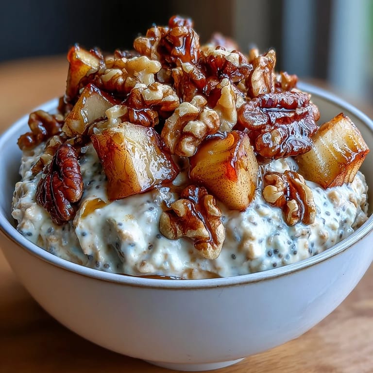 Save There's something almost magical about waking up to breakfast already waiting for you, especially on those mornings when I'd rather stay under the covers. I discovered overnight oats during a particularly hectic week when my alarm seemed to go off earlier each day, and suddenly I had this creamy, ready-to-eat bowl sitting in my fridge like a little gift from yesterday's self. The cinnamon apples swirled through it transformed what could have been a boring grab-and-go into something that actually felt indulgent, like I'd taken time to care for myself before the day even started.