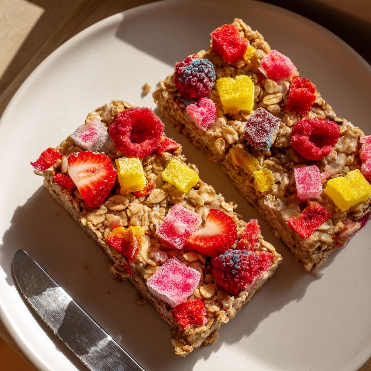 I made these snack bars as a weekend kitchen experiment with my kids. They loved choosing their favorite fruit juice and candies for the mash-up, and snacking on the finished bars felt like a small celebration.