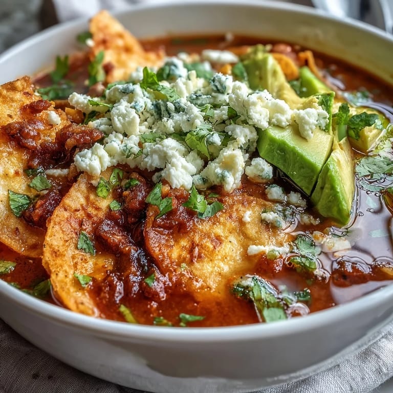 Save My neighbor Maria taught me to make sopa azteca on a Tuesday afternoon when I showed up at her kitchen asking what smelled so incredible. She laughed and said the secret was patience with the chiles, toasting them just enough to wake them up without letting them turn bitter. What started as curiosity became a ritual—every time I make this soup now, I hear her voice reminding me to smell the moment when they're perfect, that exact second before too much. The crackling tortilla strips hitting hot broth, the creamy panela melting slightly into warmth, the cool shock of avocado and lime—it all came together in her kitchen that day.