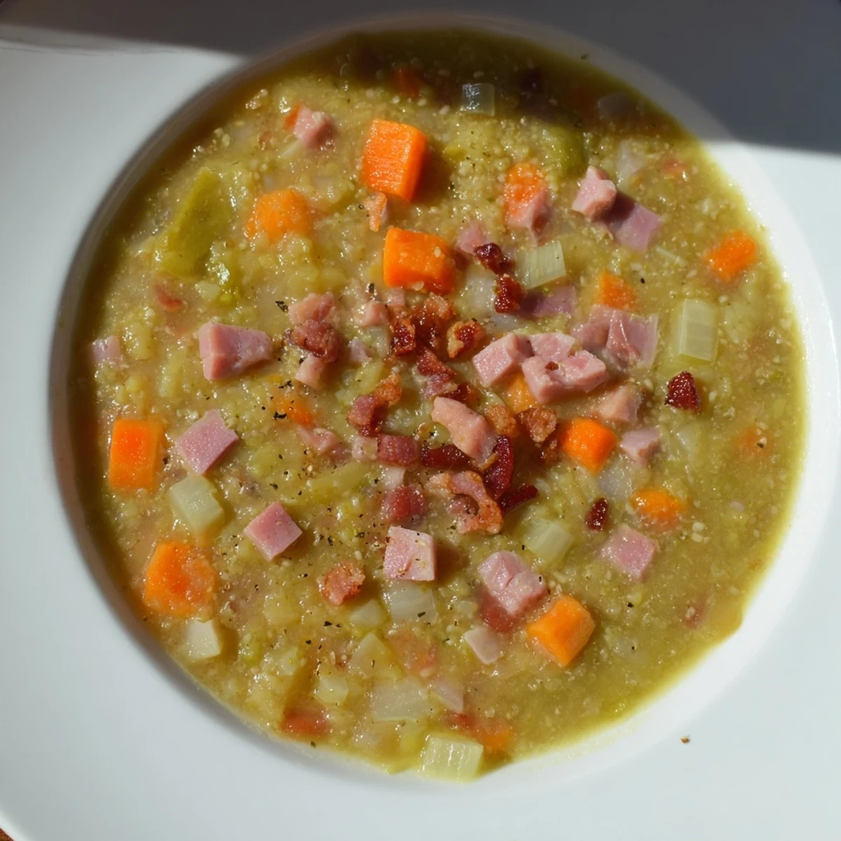 I first made this split pea soup on a cold evening when we wanted something filling but didn't have hours to cook. The combination of bacon and ham made it incredibly satisfying without much effort.