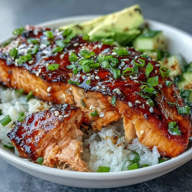 This bowl combines quick-cooking salmon with a luscious teriyaki glaze, creating a dish that's both nutritious and satisfying. The combination of textures—the tender fish, fluffy rice, crisp cucumber, and creamy avocado—makes every bite interesting and delightful.