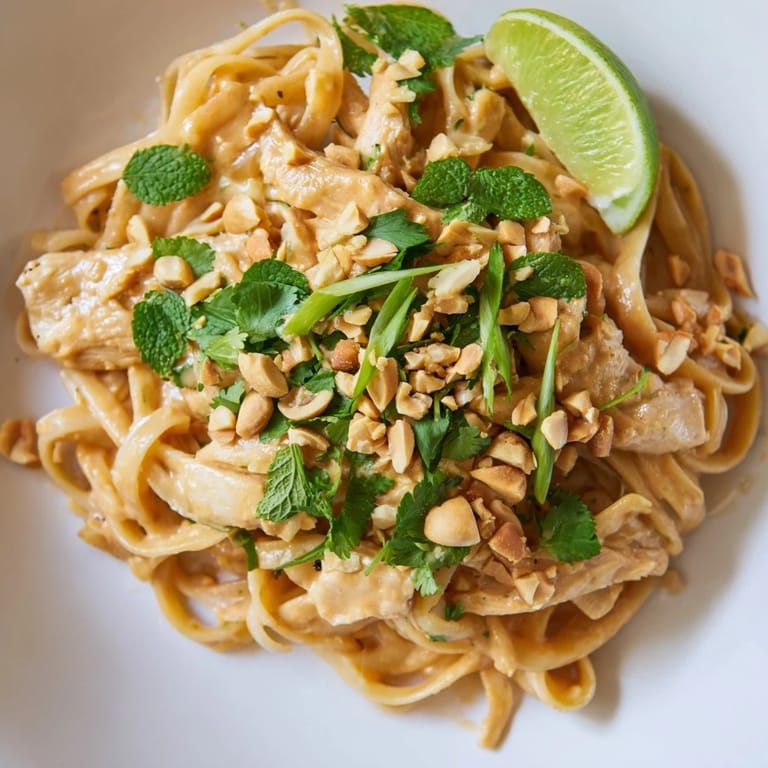 Save The first time I made this pasta, my kitchen filled with this impossibly cozy mix of garlic and lime and roasted peanuts. I had leftover Thai peanut sauce from a weekend stir-fry experiment and some chicken I needed to use, so I just threw everything together. My roommate wandered in, sniffed the air, and asked what restaurant I ordered from.