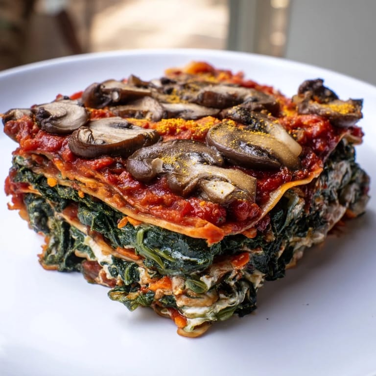 Save A hearty, budget-friendly vegan lasagna layered with savory mushrooms, spinach, rich tomato sauce, and creamy dairy-free béchamel. Perfect for family dinners or meal prep.